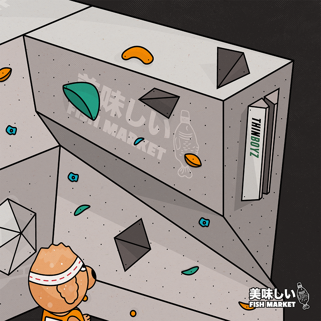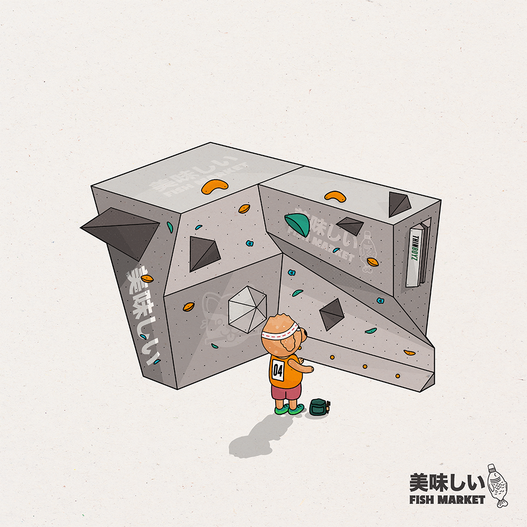 “Boulder Champ” captures a moment of focus and strategy — a dog-like creature sizing up the route on a competition boulder wall. I wanted to convey both concentration and fun, using a vibrant palette against a dark background to emphasize energy and movement. It’s a playful study in character, challenge, and storytelling through design.