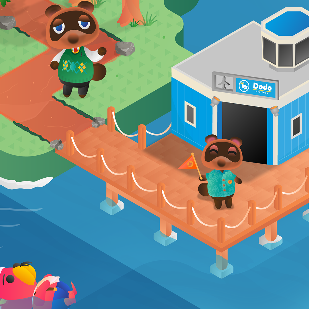 This piece reimagines a Nintendo Switch as a portal into the world of Animal Crossing: New Horizons. By splitting the console and lifting the top half, I wanted to reveal the playful microcosm inside — from the Nook’s Cranny store to Dodo Airlines, fishing spots, and first tents. Using detailed vector work, I explored depth, layering, and whimsy, celebrating the charm of game worlds and interactive storytelling.